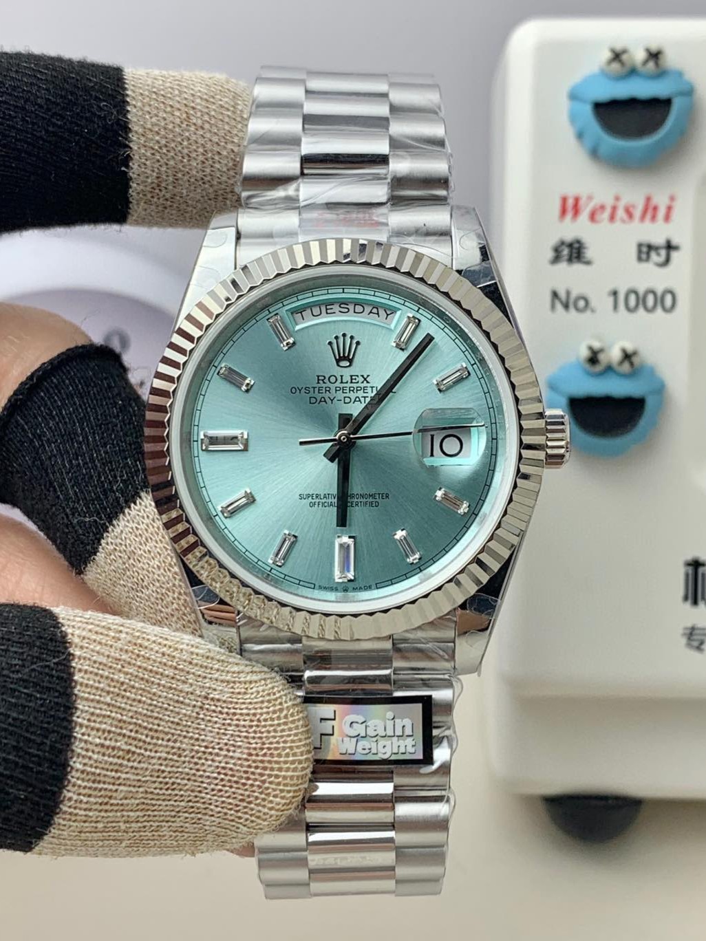 Day Date 228239 40mm 904L SS Bezel QF Gain Weight Ice Blue Dial T Dia Markers on SS President Bracelet A2836 > SHOP