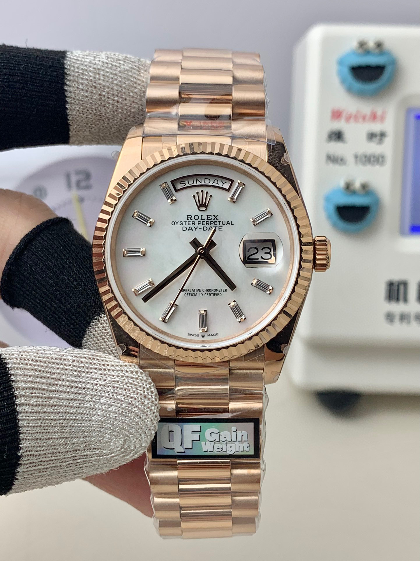 Day Date 128235 Gain Weight RG QF 1:1 Best Edition white Dial Diamond Markers on RG President Bracelet > SHOP