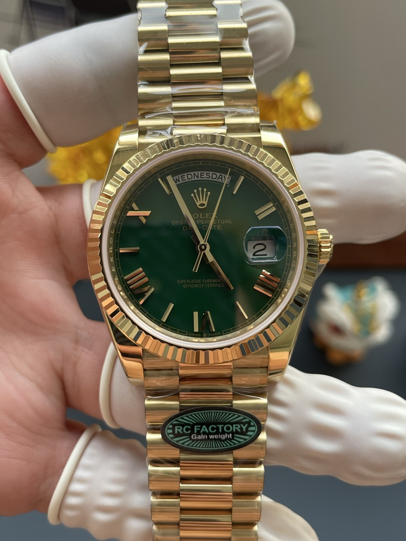 Day Date 128238 40mm Gain Weight YG RCF 1:1 Best Edition Green Dial Roman Markers on YG President Bracelet Asian Super Clone 3255 > SHOP