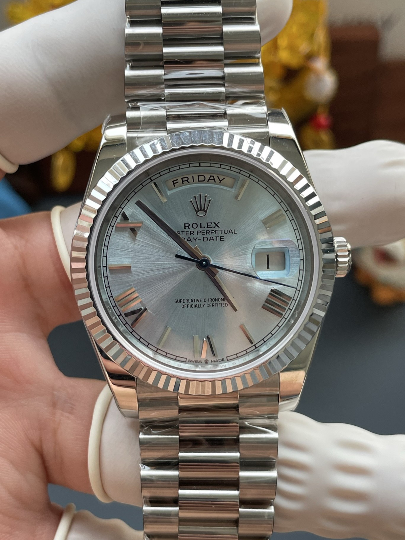 Day Date 128239 40mm Gain Weight SS RCF 1:1 Best Edition Ice Blue Dial Roman Markers on SS President Bracelet Asian Super Clone 3255 > SHOP