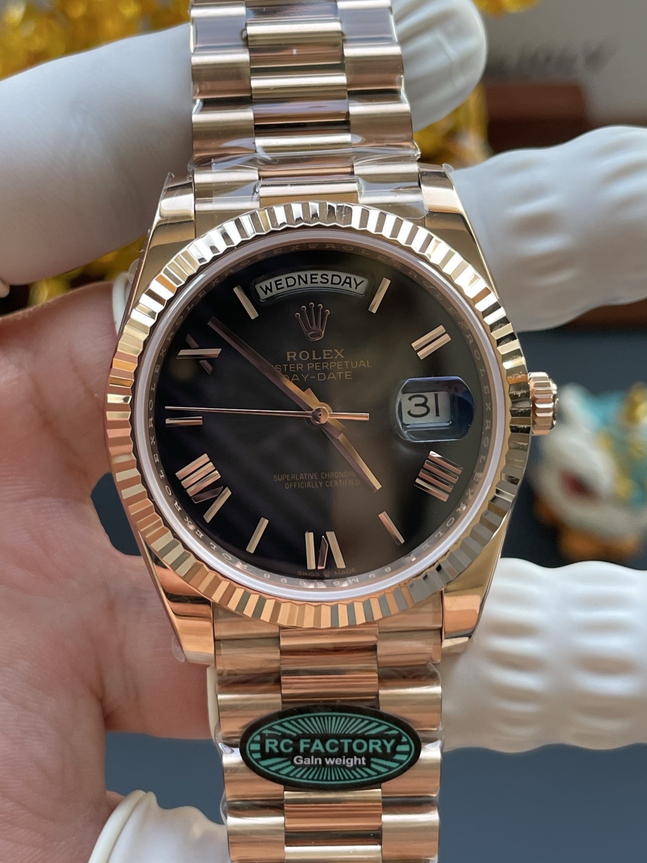 Day Date 228235 40mm 904L RG RCF 1:1 Gain Weight Black Gradient Dial Roman Markers on RG President Bracelet Asian Super Clone 3255 > SHOP