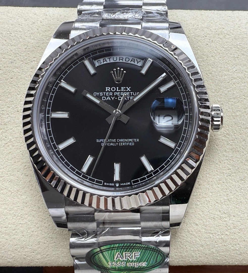 Day Date 228239 40mm 904L SS ARF Gain Weight 1:1 Best Edition Black Dial Stick Marker On SS President Bracelet VR33255 > SHOP