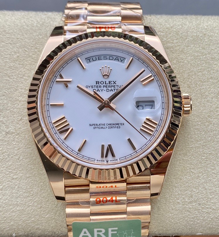 Day Date 228235 40mm RG ARF Gain Weight 1:1 Best Edition White Dial Roman Markers On RG President Bracelet VR33255 > SHOP