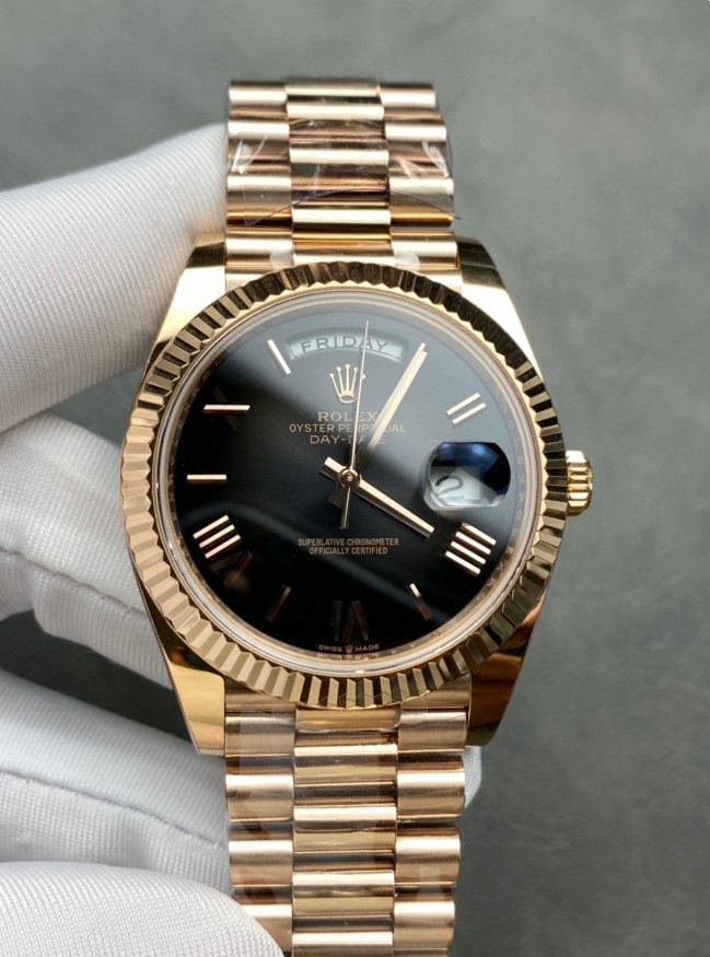 Day Date 228235 40mm 904L RG 1:1 RCF Gain Weight Best Edition Black Gradient Dial Roman Markers on RG President Bracelet Asian Super Clone 3255 > SHOP