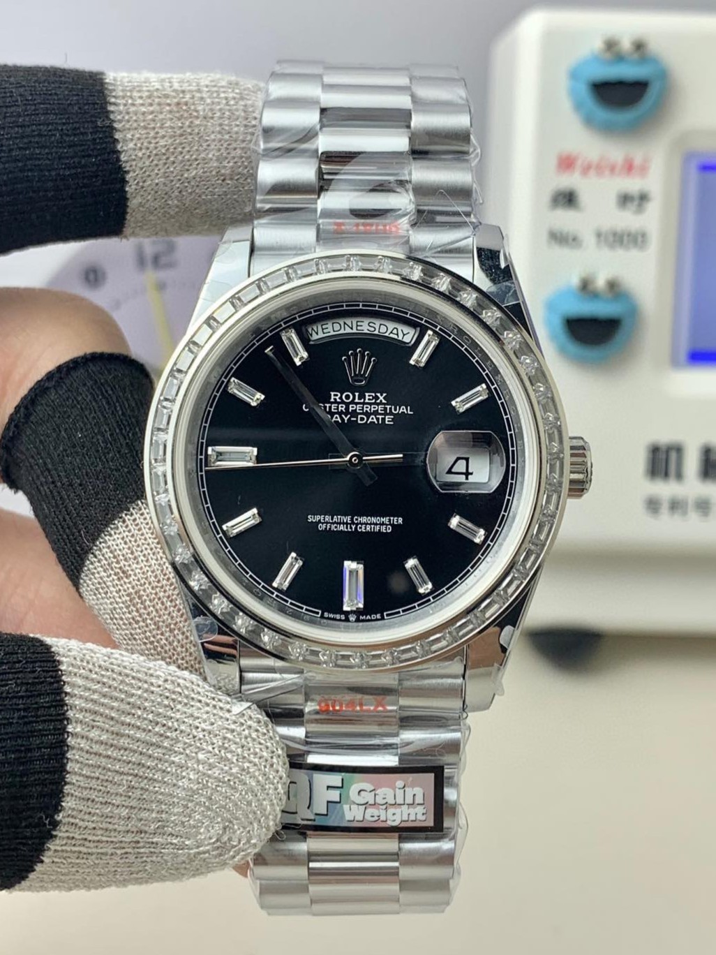 Day Date 228239 40mm 904L SS QF Gain Weight 1:1 Best Edition T Diamond Bezel Black Dial on SS Bracelet A2836 > SHOP