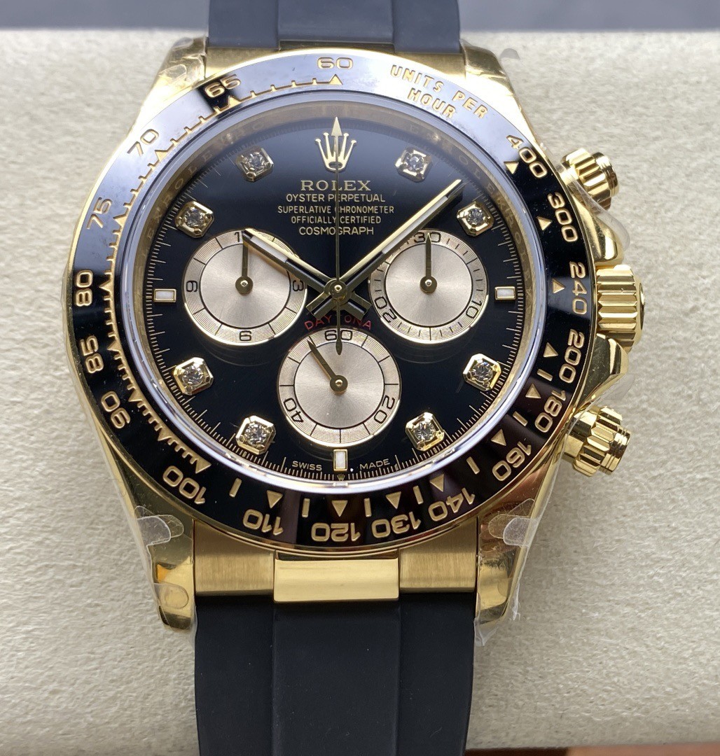 Daytona 126518 QF 1:1 Best Edition Black/YG Diamonds Dial on Oysterflex Strap SH4131 (Gain Weight) > SHOP