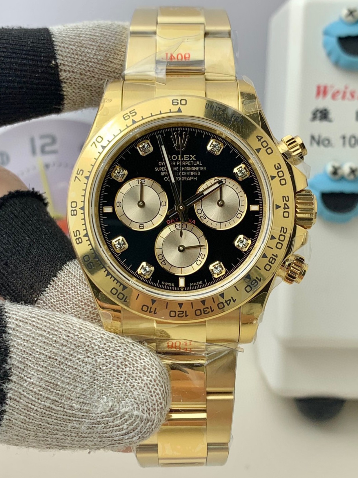 Daytona 126509 904L YG QF Best Edition Black Dial YG Subdial Diamonds Markers On 904L YG Bracelet SA4131 > SHOP