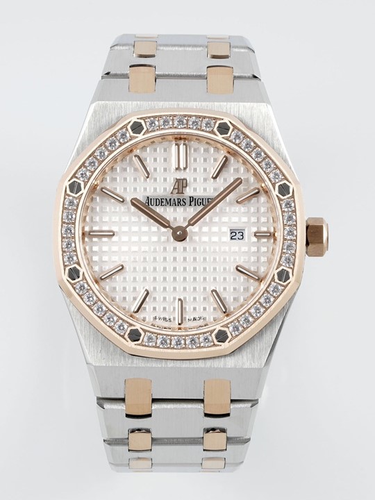 Lady Royal Oak 33mm 67651 Diamonds bezel SS/RG ZF 1:1 Best Edition White Textured Dial on SS/RG Bracelet RONDA Quartz > SHOP