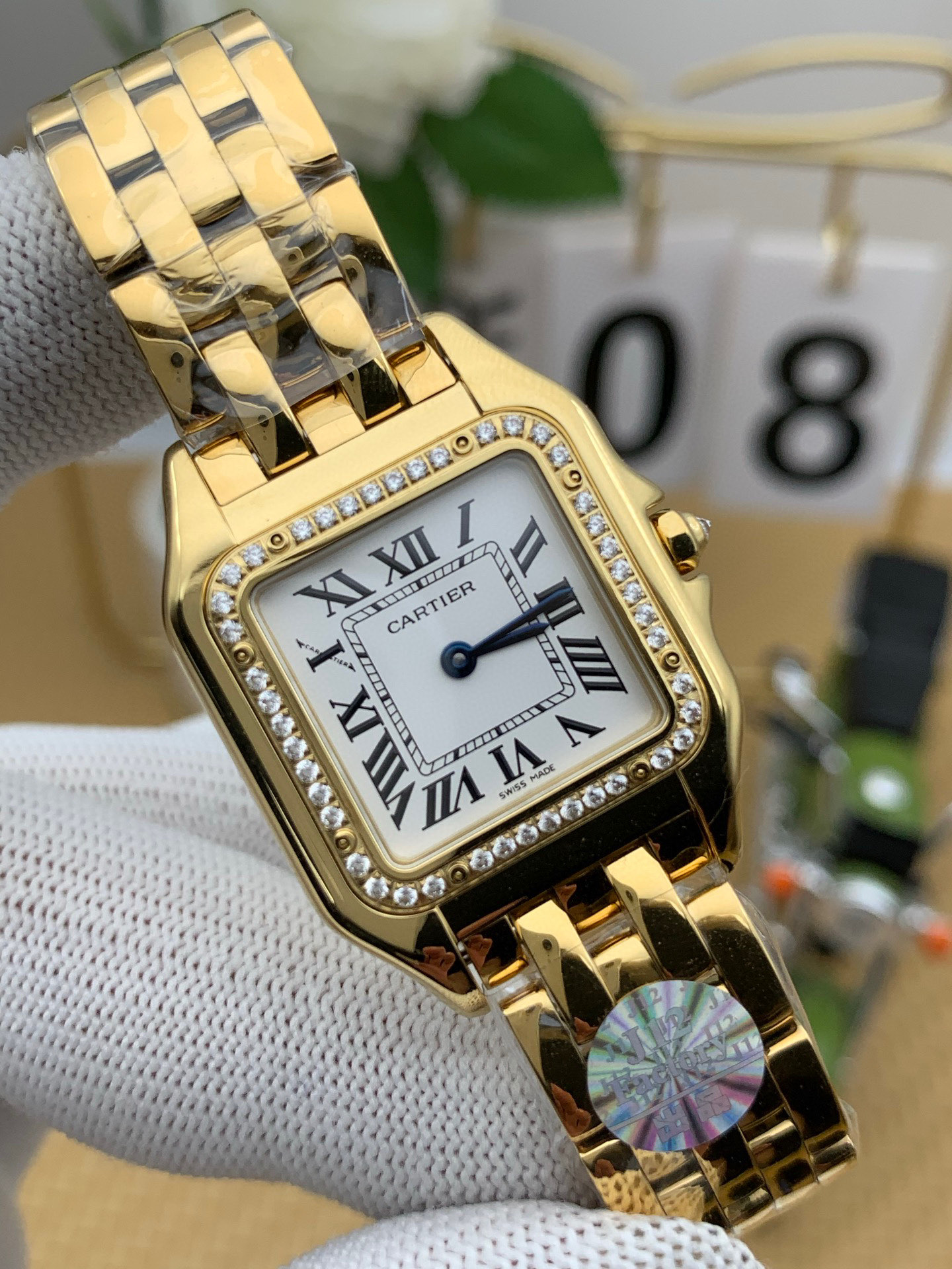 Panthère Secrete Ladies 27mm(M) YG BV(J12)F 1:1 Best Edition White Dial Diamonds Bezel on YG Bracelet Ronda Quartz > SHOP
