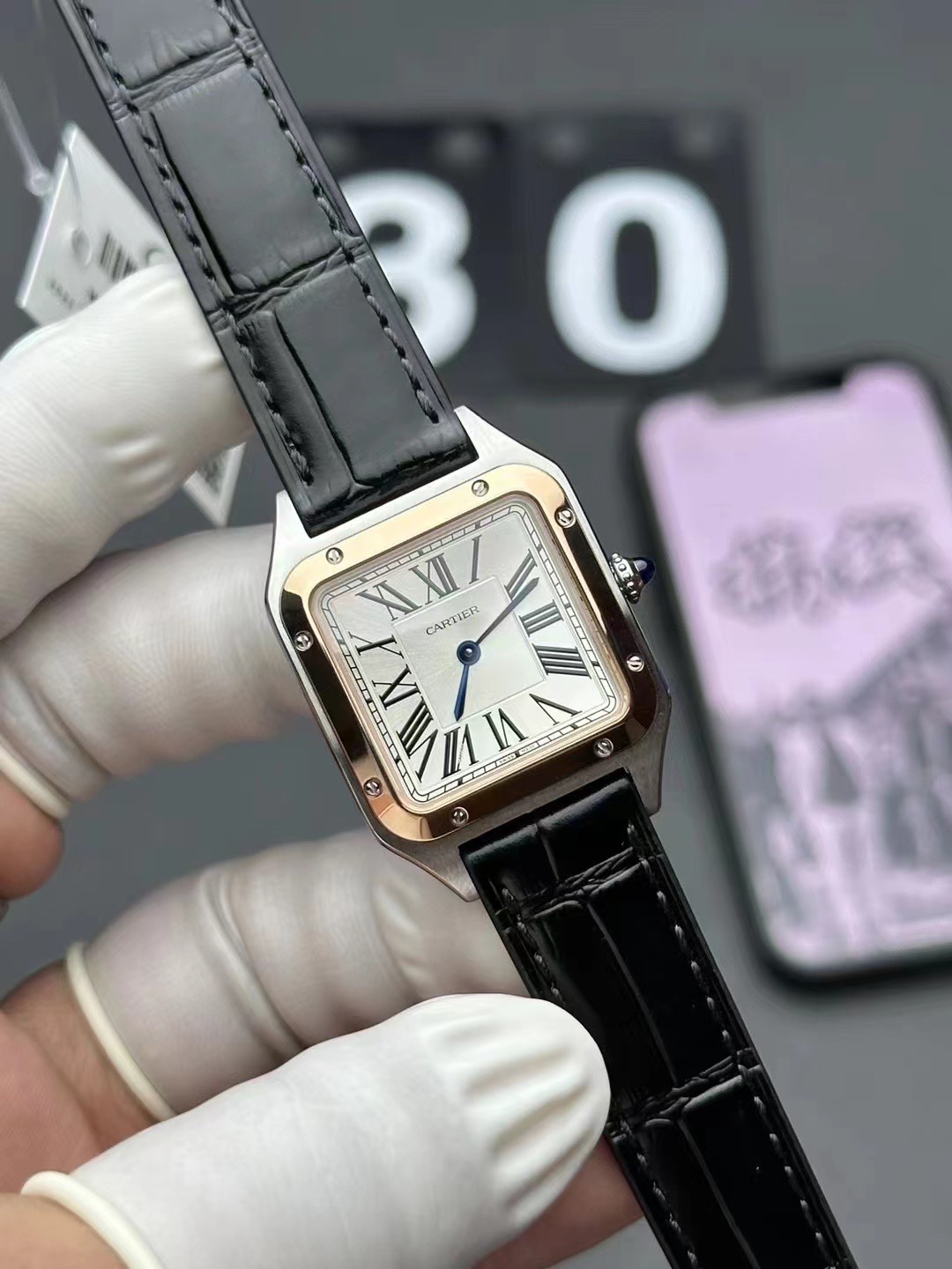 Santos Dumont 31.4mm SS/RG F1 1:1 Best Edition Silver Dial on Black Leather Strap A157 > SHOP