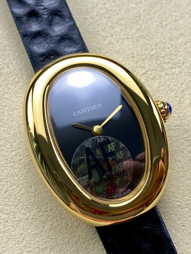 Baignoire De Cartier YG AF 1:1 Best Edition Black Dial on Black Leather Strap Ronda Quartz (Small) > SHOP