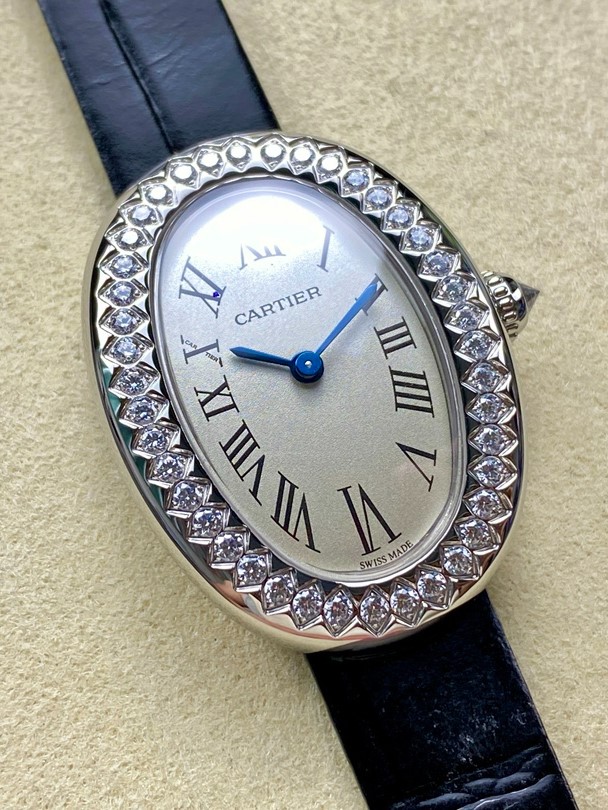 Baignoire De Cartier Diamond Bezel AF 1:1 Best Edition Silver Dial on Black Leather Strap Ronda Quartz (Small) > SHOP